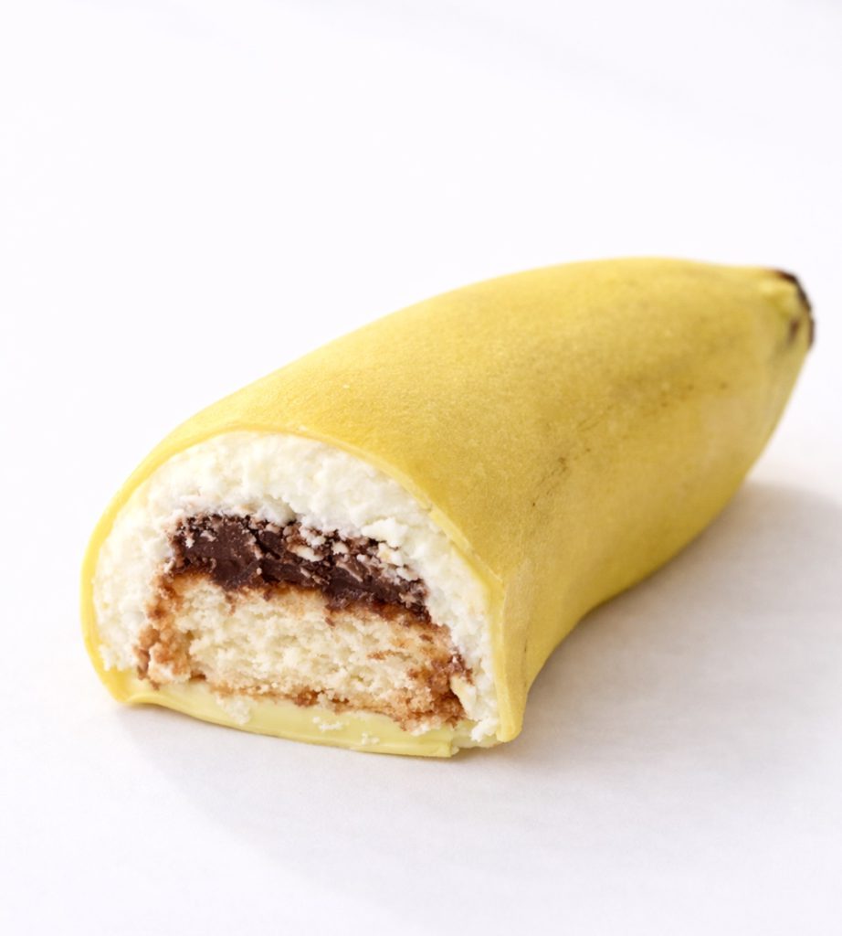 нежное корпусное пирожное в форме банана с тонкой шоколадной глазурью